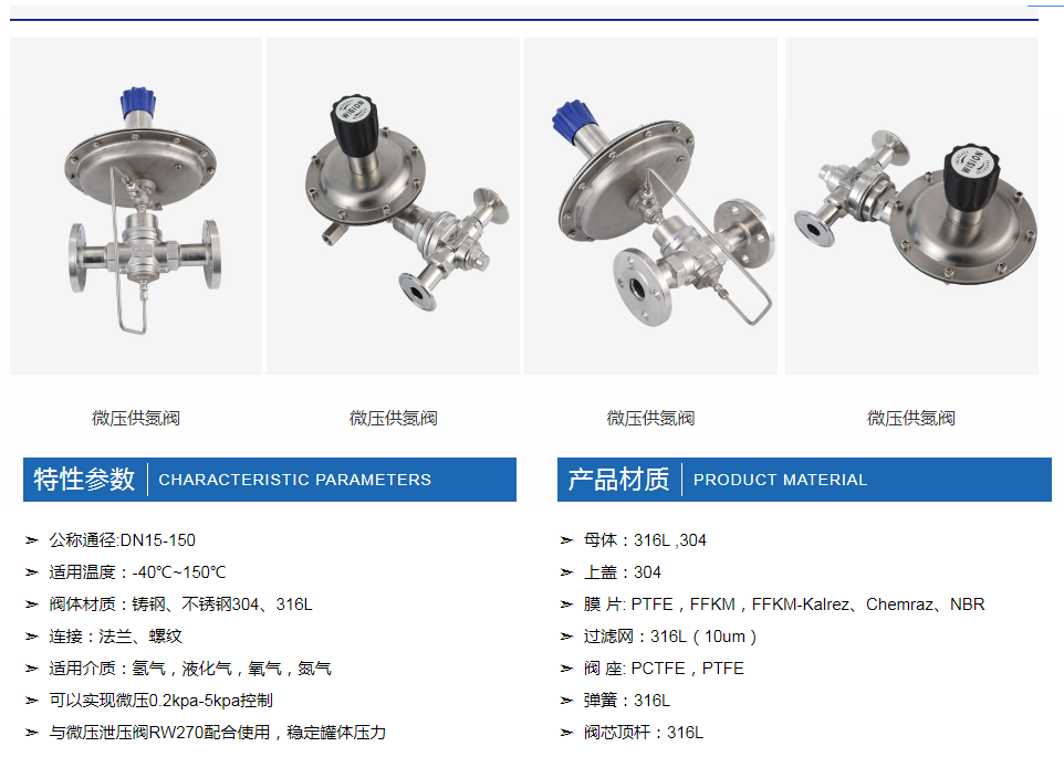萊克品牌-進口微壓供氮閥靠介質(zhì)壓力進行閥后壓力自動調(diào)節(jié),介質(zhì)為無腐蝕性氣體,壓力可以從3~10bar減壓到0.4~24kpa,溫度小于150℃,用于控制氣體混合比,氣體減壓、穩(wěn)壓、泄壓調(diào)節(jié)和用于各種儲罐氣封保護。
