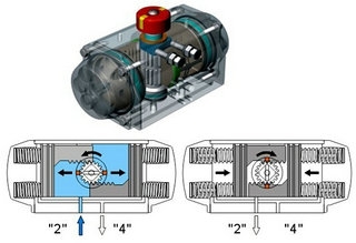 雙作用就是你給氣,氣動執行器開始轉動,打開閥門; 當要關閉閥門時需要要另外一邊給起才能關閉!
