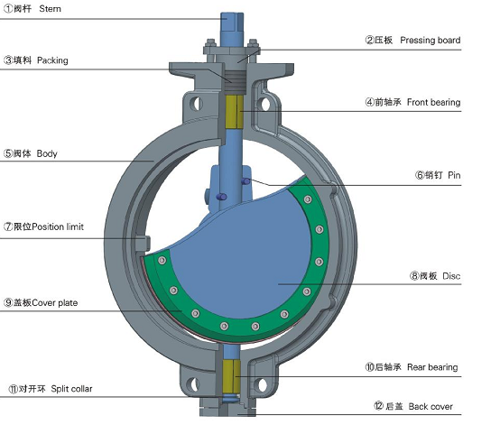 進口高性能蝶閥,采用雙偏心結構設計。軸中心雙偏離閥體結構中心,同時結合閥板圓弧密封面的設計,使閥板在打開時迅速脫離密封座,以減小密封面的磨擦力,閥板在關閉時具有更好的密封性能。并使閥門操作力大大減少,有效提高了蝶閥的控制精確度。該系列蝶閥密封壽命長;密封性能卓越,適用于一般腐蝕性氣體,液體介質的調節和切斷使用。